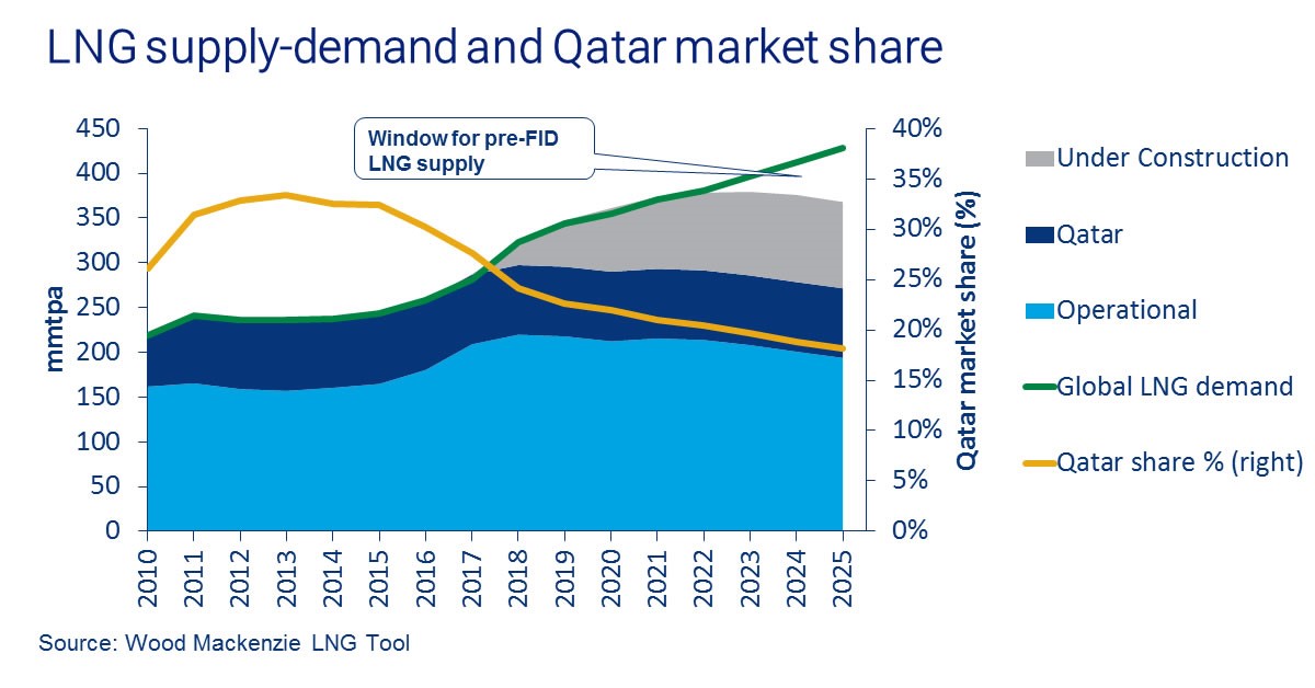 It's a signal that Qatar intends to increase its market share, which has been falling as other regions have built new capacity. But it is also a threat to other developers of new capacity worldwide, as Qatar can add new capacity at a lower cost than anybody else. Any development of the North Field is likely to have a strong liquids component.