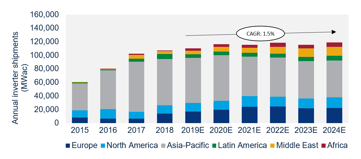 Global Annual Inverter Shipments by Region (Megawatts-AC), 2015-2024E
