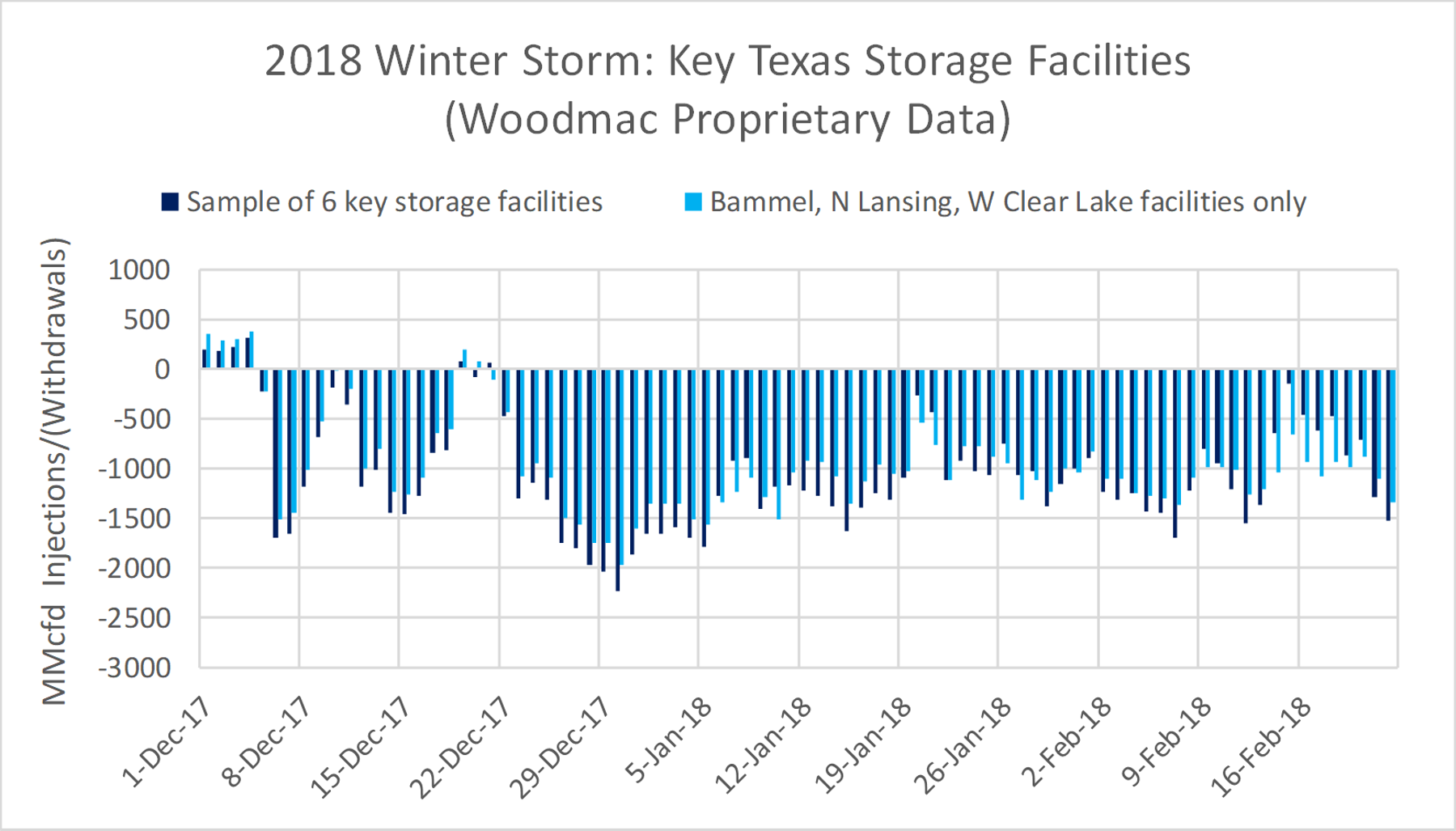 Key Texas gas storage facilities: withdrawals during 2018 winter storm