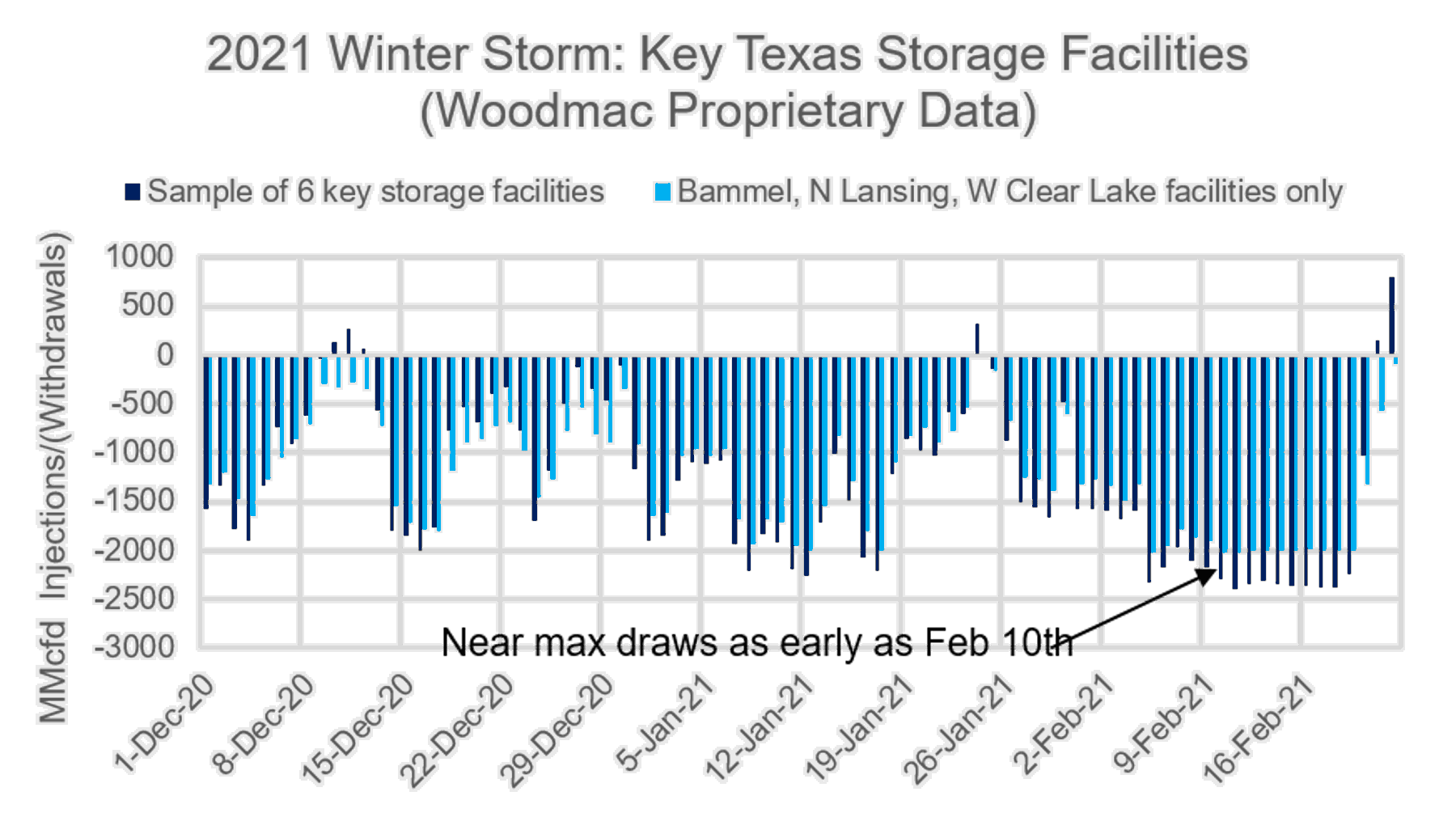 Key Texas gas storage facilities: withdrawals during 2021 winter storm
