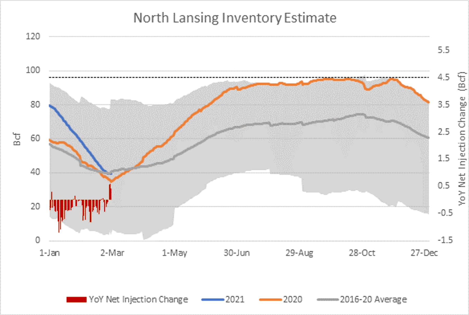 NGPL North Lansing Gas Storage Facility: comparative inventory estimates 2016-2021