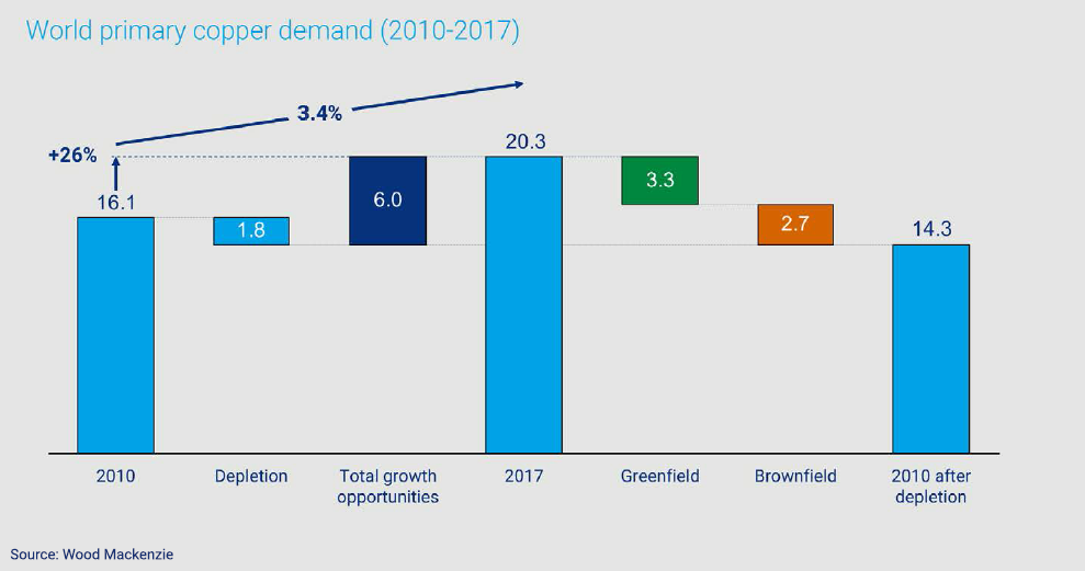 On top of gross capacity additions from greenfield and brownfield developments, approximately 3.3 Mtpa of 2010 output changed hands during the same time through M&A. The resulting growth movements have led to significant changes in the ranking of the largest copper producers between 2010 and 2017.