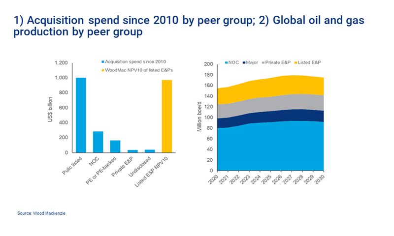While this will be a theme in the evolving corporate landscape, it will not be dominant. Don’t expect to see the entire E&P space taken private. Cost will be an issue for one. We currently value the listed Independents at nearly US$1 trillion (NPV10, US$50/bbl long-term Brent). That’s six times the amount that PE spent in upstream M&A over the past ten years. And we model US$2.5 trillion (real terms 2020) of remaining capital investment.