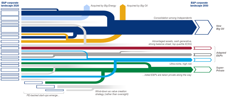 Hypothetical evolution of E&P corporate landscape between 2020 and 2050