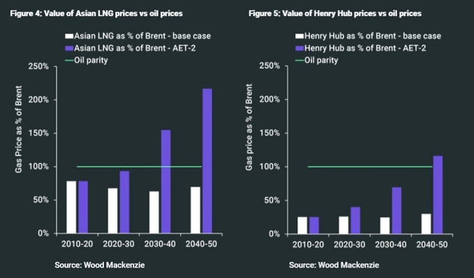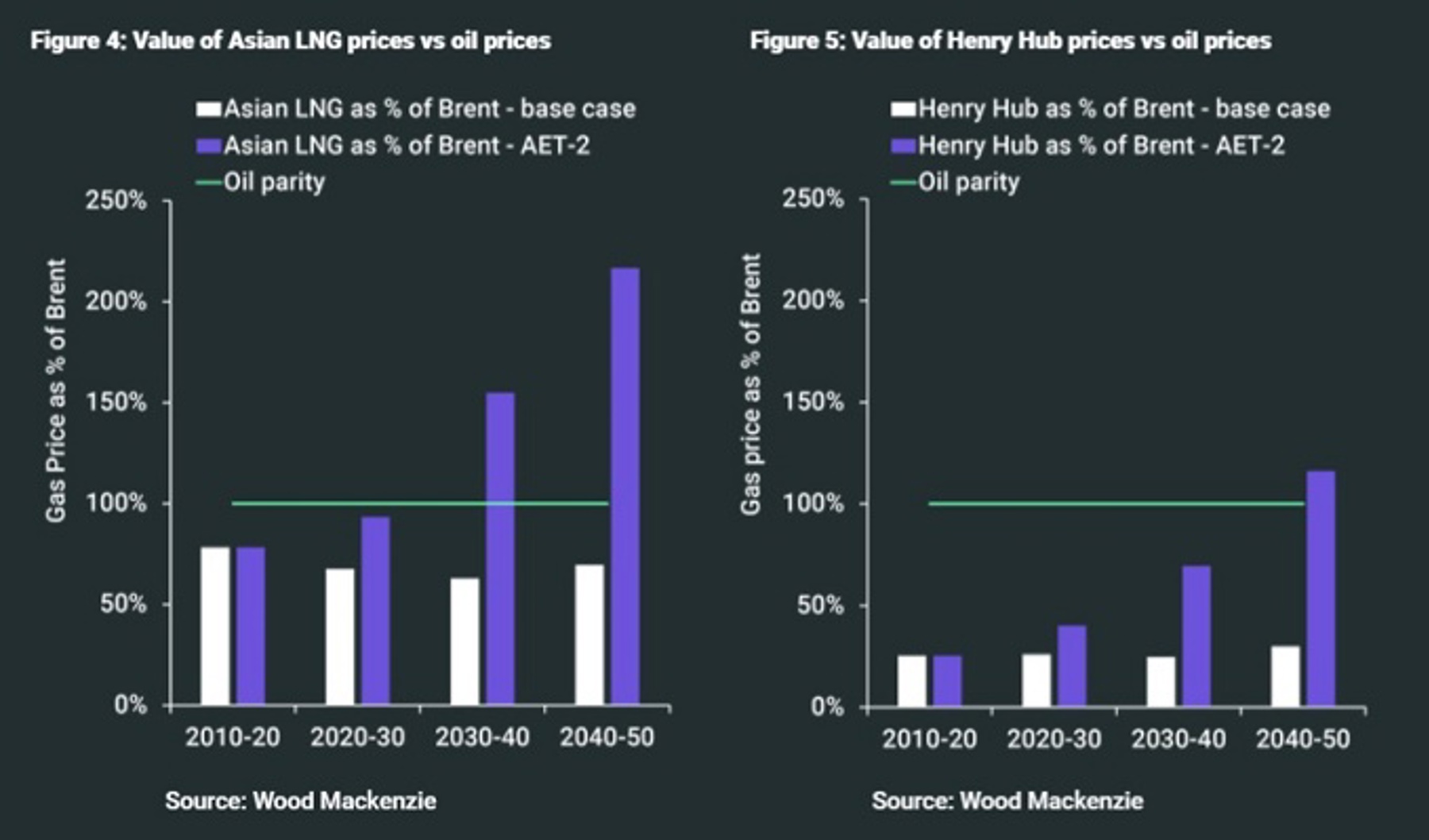 This comes from the latest in our series of Horizons reports, looking at the big issues in energy and natural resources for the long term. The report, titled “Reversal of fortune”, looks at the question of what might happen to oil and gas prices if the world’s governments do get serious about achieving that Paris agreement goal of limiting the global temperature rise to well below 2° C. The conclusions are striking. In that world, demand for both oil and gas are lower, as you might expect, but demand for gas is more resilient, and that has some radical consequences for pricing. Throughout the industry’s history, gas has almost always been priced at a discount to oil, for an equivalent energy content. But in a world in which oil demand slumps while gas demand declines much more gently, gas could actually be priced at a premium. In a 2° C world, shown by the purple bars here, gas prices exceed oil prices in the 2030s for LNG in Asia and the 2040s even for Henry Hib gas onshore in the US. It is always important to remember with these cases that they are simply scenarios showing what could happen, rather than our base case showing what we think is most likely to happen. But given the mounting pressure on the governments of the world to live up to the Paris goals, it is a valuable exercise to explore what that might mean.