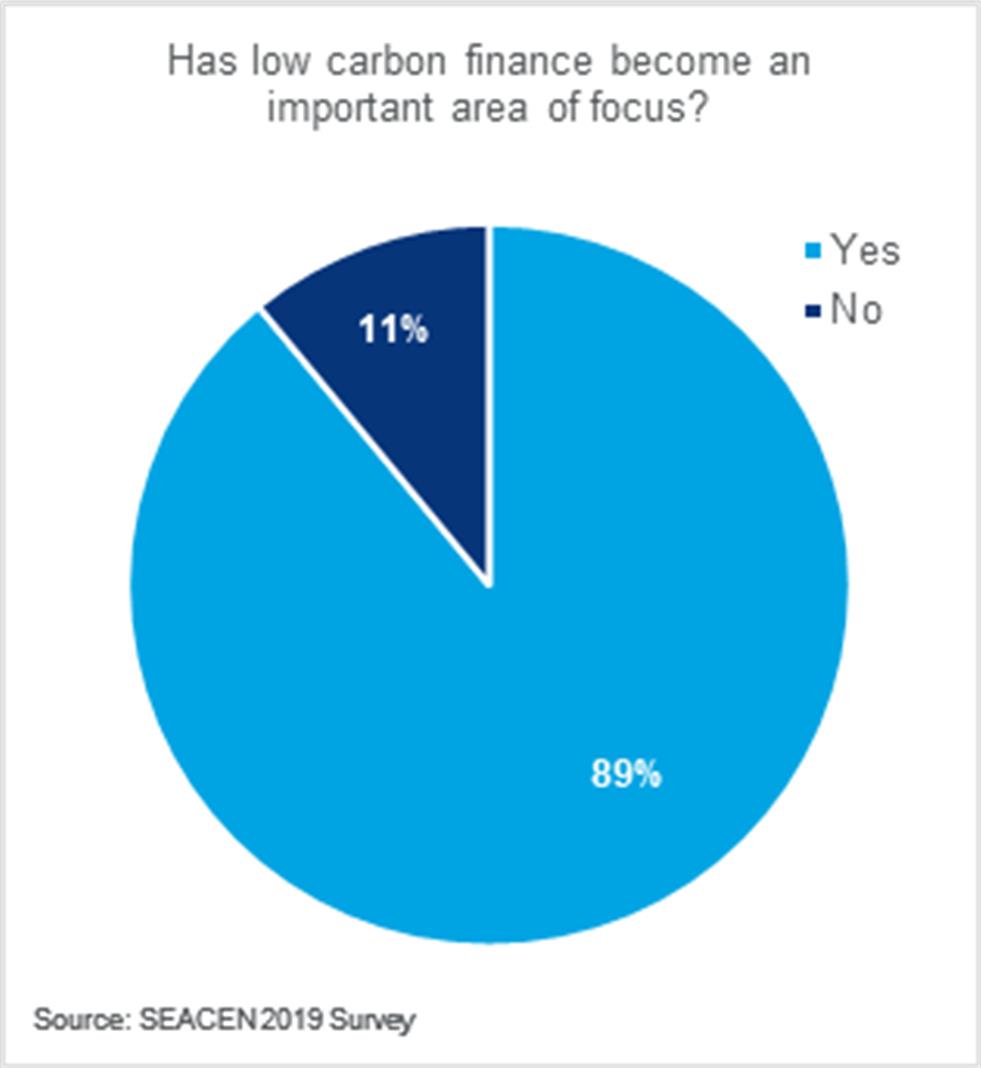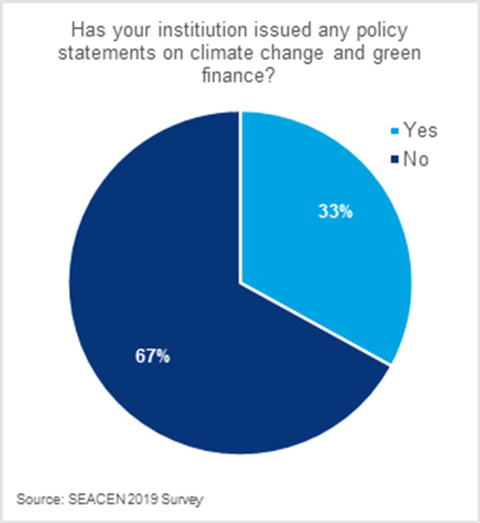 The SEACEN Centre survey also showed that while almost all respondents believe that their institution should be involved in supporting low-carbon financing and green initiatives, only 22% had any strategic investment mandate to scale up private investment in low carbon sectors. No central bank in Asia has any plans to establish a green bank under its control. These are still early days.