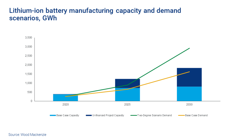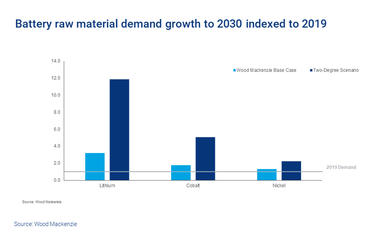The current rate of development of the battery sector and raw materials is not enough to support emissions reductions in line with the 2°C target. Indeed, based on today's investment and technologies, Wood Mackenzie's outlook for energy markets forecasts emissions leading to 3°C warming by the end of this century.