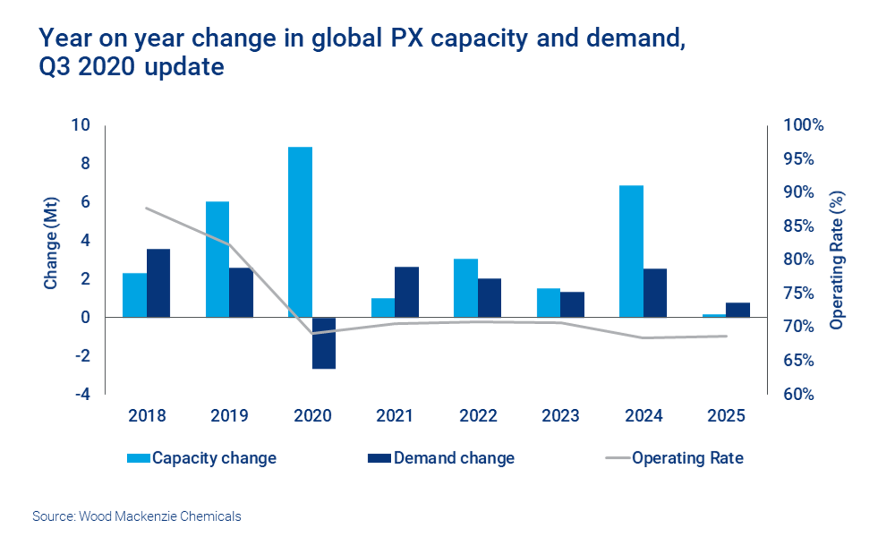 Demand growth for PX has been cut by 2.5Mt from our pre-pandemic view. We expect a rebound next year, but some demand will be simply lost forever.