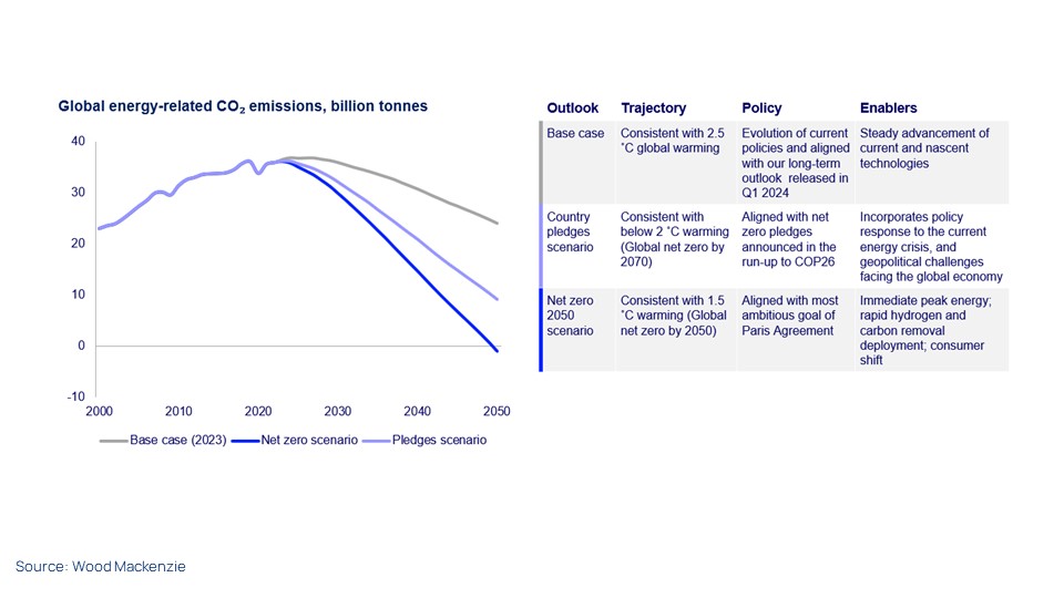 Global steel emissions are set to tail off by 30% in base and 84% in net zero. China’s emissions have peaked and are in decline, whereas India and S.E. Asia, with a healthy 4-5% steel demand growth over the long term will lift their emission profiles in the base case.