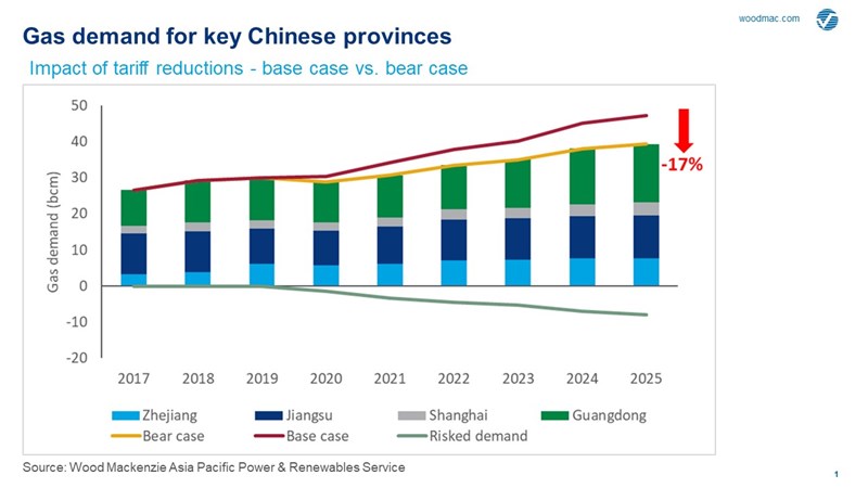 Amidst rising trade tensions, China is seeking to boost manufacturing competitiveness by reducing electricity costs. Regulated gas-fired power tariffs have been cut by up to 28% in key provinces since June. This reduction in tariffs would of course have been less likely without current low gas prices - why give gas-fired power producers extra profits at the expenses of consumers? – but cutting tariffs to levels close to much cheaper coal-fired power is a bold move. China’s ‘coal parity’ initiative is already having a major impact on the economics of the current gas fleet, impacting utilisation and investment decisions for new units. If tariff cuts are maintained, we estimate up to 8 bcm of gas demand from power could be at risk in 2025.