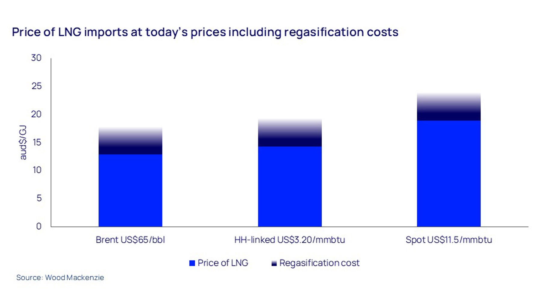 Importing LNG further exposes Australia to international prices which are expected to be higher longer term and have always been volatile. If Australia starts importing LNG, the local price will move towards the cost of LNG plus the fee for using the regasification facility and then transportation to the end market. This price has the potential to be materially higher than LNG netback.