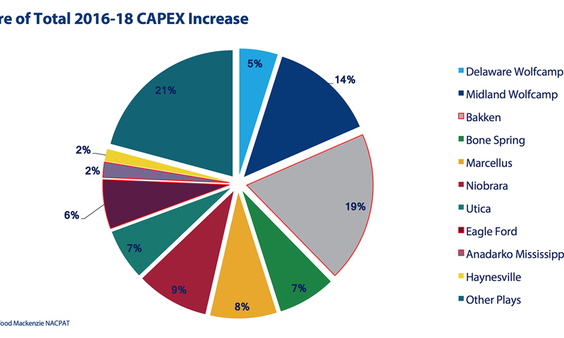 PRB operators’ pivot to slickwater has saved money and brought a new level of productivity to the test zones. Devon, EOG, and Chesapeake are the key public players holding massive acreage position, but watch privates like Peak Energy, Anschutz Exploration, and World Oil.