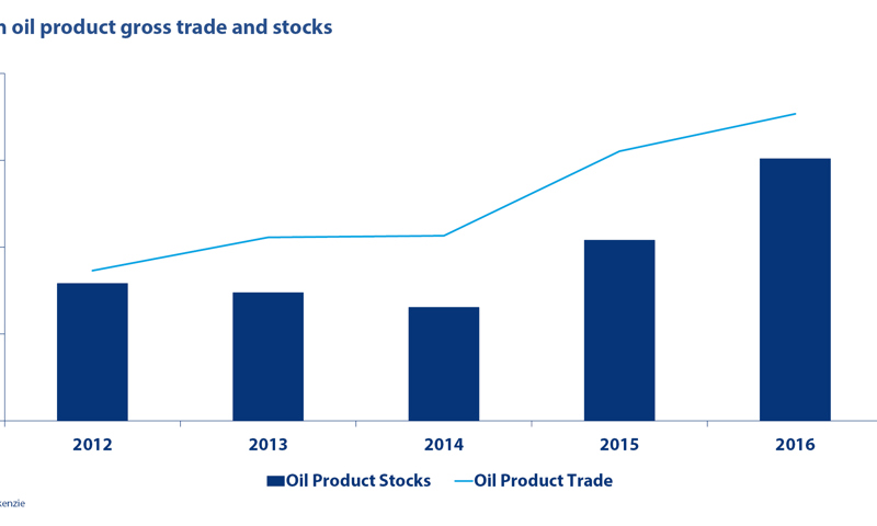 Demand for oil product storage has increased in recent years, underpinned by an improving market. This is reflected in increasing European oil product trade movements and stock holding volumes, which are supportive of utilisation and tank turns at existing sites, hence potential revenues.