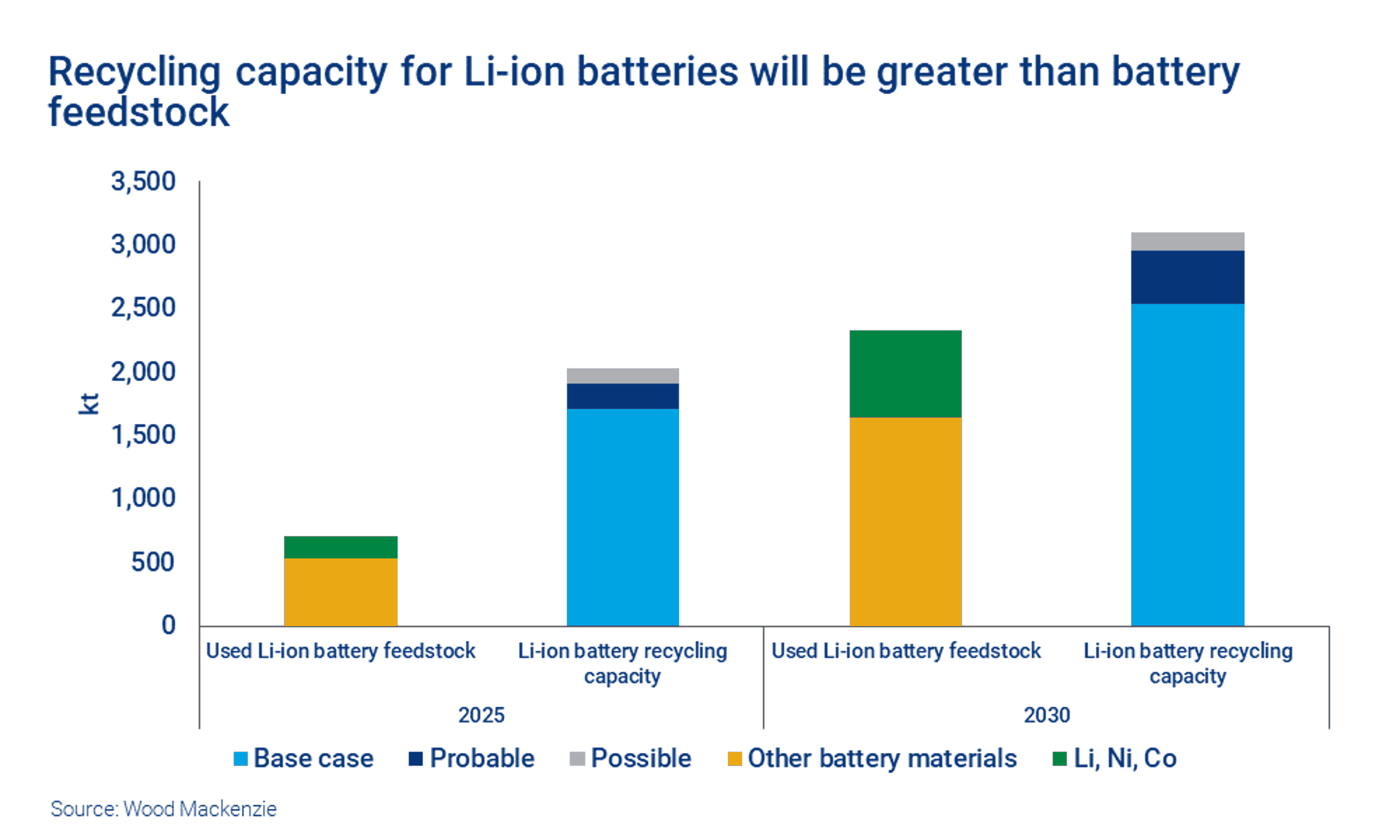 The lack of recyclable feedstock will ultimately limit the sector’s impact on Li-ion battery material supply by 2030