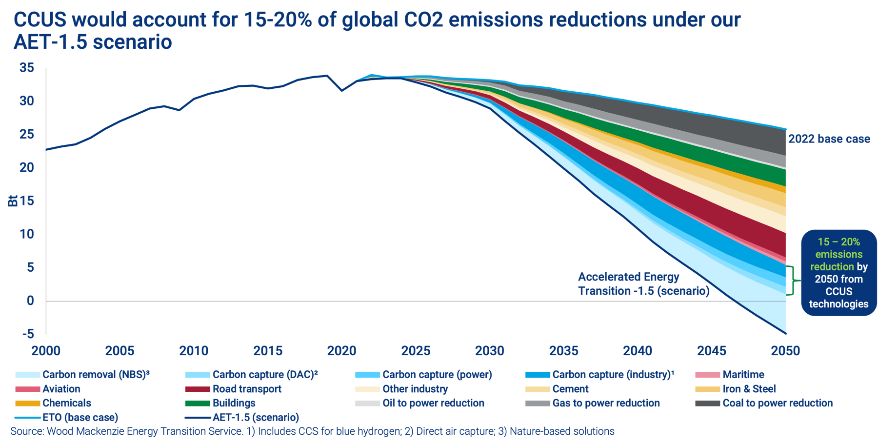 We believe 2023 will be a milestone year for carbon capture and storage, with the technology finally moving from niche concept to mainstream investment theme. It’s increasingly clear that CCUS has huge potential to help deliver a net zero future. In fact, under our AET-1.5 scenario – whereby global warming is kept below 1.5°C – CCUS accounts for at least 15% of the reduction in overall global carbon emissions.
