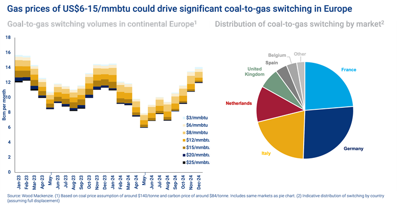 Switching is most likely in Europe, where prices have reconnected to the upper range of the coal-to-gas switching band. This incentivises some gas demand response to emerge. Coal producers can reduce margins to some extent to stay competitive. However, coal will struggle below a price of US$80 per tonne – that translates into gas switching prices of around US$10/mmbtu. At that level, the market impact could be even more significant.