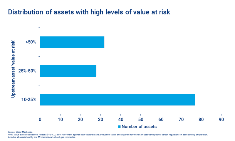 With carbon prices in the US$40 to $60/tonne range, the focus of attention for both the companies and investors must be on those assets and resource themes with the most to lose. Only with carbon prices in the hundreds of dollars range does the value at risk present a more generic and wide-ranging issue for the upstream sector.