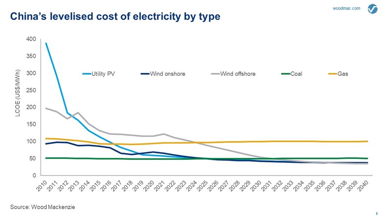 Renewables are undoubtedly an important part of the future supply mix, but it is important to consider costs and availability. China needs low cost coal plants to meet demand before the late 2020s when renewables costs will have lowered to such a level that they can compete against coal without subsidies. Generation costs of onshore wind and utility solar will fall to similar levels as coal by around 2026, with offshore wind costs not reaching this point until around 2032.