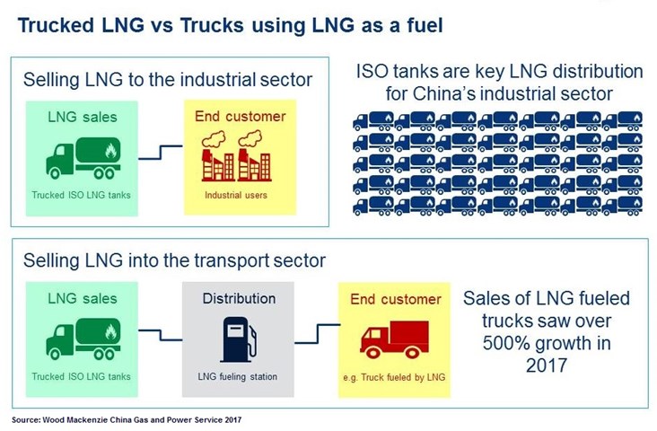 'Trucked LNG' is selling LNG into the industrial sector - distributing LNG ISO tanks by truck.