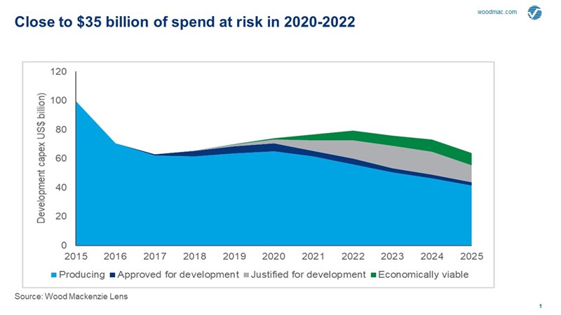 Looking across Asia Pacific, close to $35 billion of pre-FID and development spend is at risk in 2020-2022, and that’s before we consider potential cuts to existing spend on producing assets.