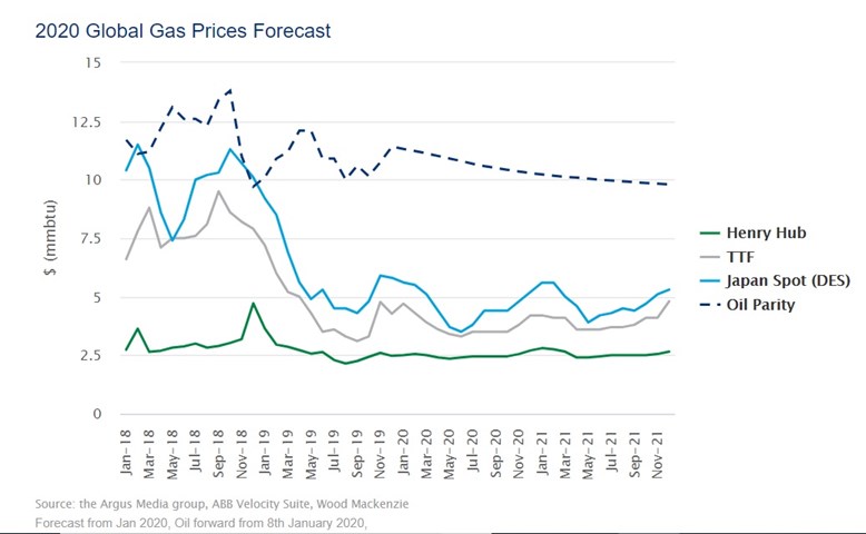 This comes from a WoodMac Insight report looking ahead at what to expect in gas and LNG markets in 2020. Gas is in abundant supply right now, and prices have fallen sharply, driven in part by the warm winter in much of the US. The US Henry Hub benchmark this week dropped briefly below $2 per million British Thermal Units (BTU), for the first time in almost four years, while LNG prices in Asia fell below $4 per million BTU. Our analysts do not expect any sustained recovery this year. As Giles Farrer and his team put it: “The big suppliers — Qatar, Russia and the US — are locked in a battle for market share, waiting to see who blinks”.