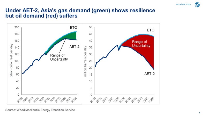 Of course, the strong demand outlook in the AET-2 is made possible by gas’ lower carbon footprint compared to other fossil fuels and its role in the energy transition as Asia look to reduce its dependency on coal. As a result, AET-2 Asian gas demand remains only 13% lower than the ETO by 2050.