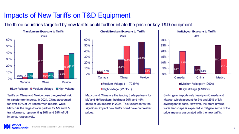 These tariffs could significantly impact the cost structures and operations of many businesses, particularly businesses with US utilities as end customers. Our recent analysis of supply chain spend profiles among utility clients who have commissioned work on this topic has identified key equipment items that have price risk both in terms of direct suppliers and sub-suppliers, especially from suppliers with facilities in Canada and Mexico.