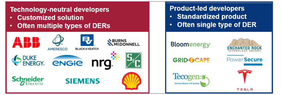 These developers are generally microgrid control companies, energy service companies or engineering, procurement and construction providers.