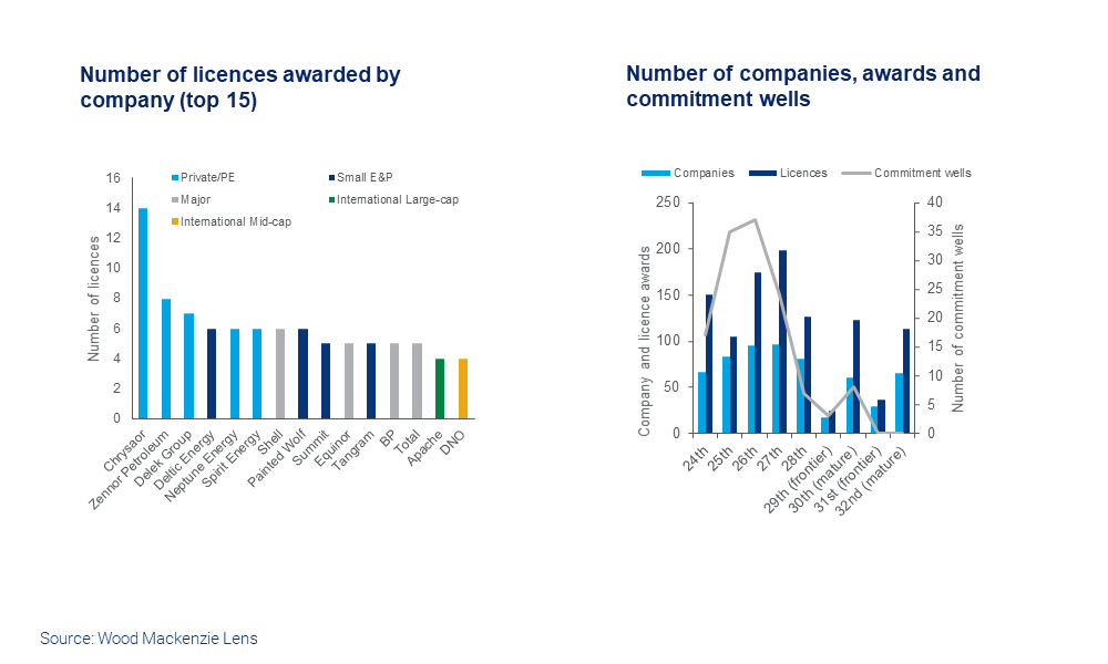 The Majors have been rationalising portfolios in recent times, but BP, Shell, Total and Equinor were active. However private equity-backed E&Ps were the real driving force with Chrysaor picking up the largest number of licences, beefing up acreage around existing hubs such as Britannia.