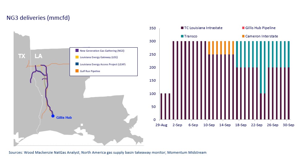 NG3 is the latest large-scale intrastate gas gathering system in Louisiana, following the Louisiana Energy Gateway (LEG) pipeline, which began first flows in late July. Together, they represent a significant boost in takeaway capacity from the Haynesville Shale.
