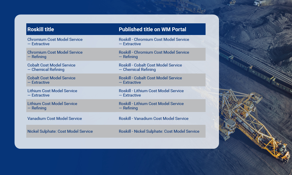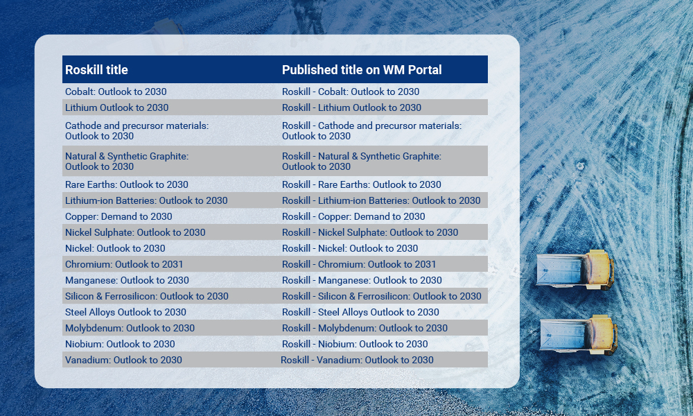 Report titles in the Wood Mackenzie portal are different than those in Roskill Interactive. Please refer to the chart below for the name changes.