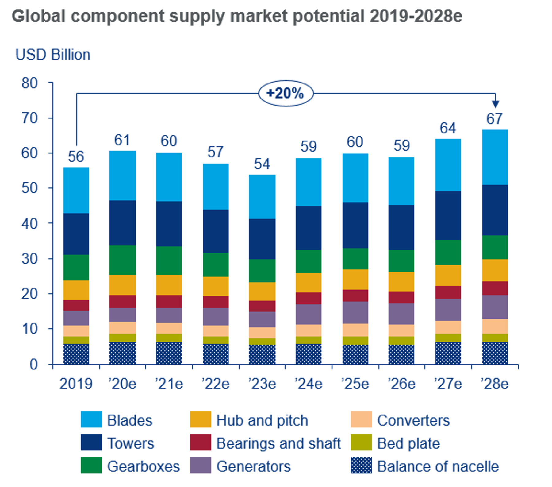 Despite demand fluctuations, the global wind turbine supply chain is racing towards a $600 billion cumulative opportunity by the end of 2028.