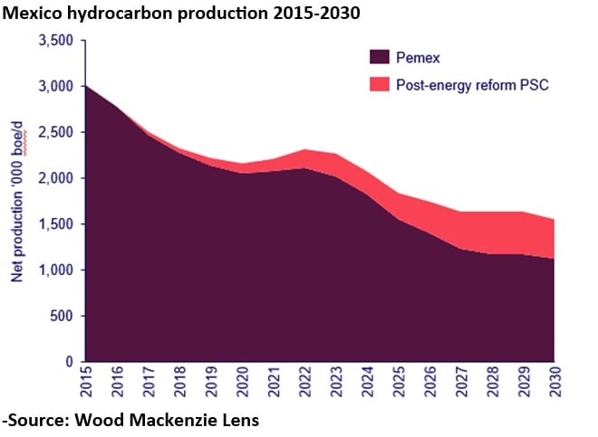 “The energy sector in Mexico faces major challenges linked to the growth of demand in all sub-segments, upstream among them,” said Adrian Lara, principal analyst, upstream Latin America for Wood Mackenzie. “Regardless of the presidential election outcome, there is a need for the new government to re-assess not only the role but also the terms for increasing private investment in the energy sector.