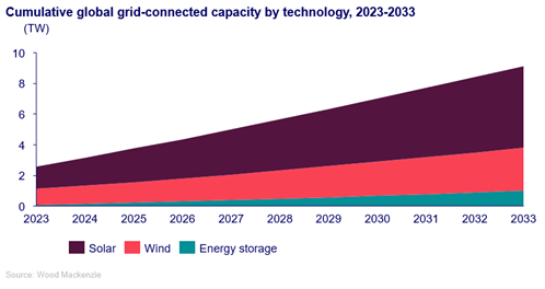 Solar and wind uptake to reach 5.4 TWac from 2024 to 2033