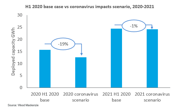 If coronavirus containment measures continue to curtail movement of goods and people through Q2 this year, alongside an economic downturn, the market impact could trim Wood Mackenzie’s 2020 global energy storage deployments forecast by 19%.