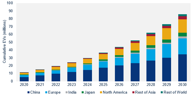 Wood Mackenzie expects EV growth to add 241,453 megawatt-hours of power demand in 2030 in the US alone, as more than 80 million EVs hit the road.