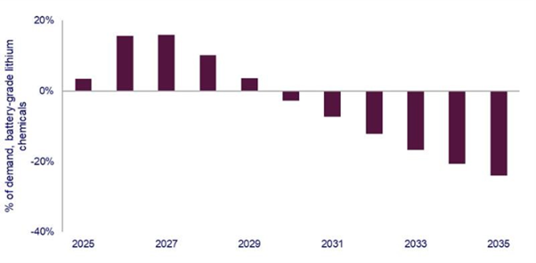 The global lithium market is expected to face a significant supply surplus over the next decade, with deflationary pressures from China’s overcapacity in processing and trade tensions with the U.S. threatening to reshape the market’s dynamics. According to Wood Mackenzie, the current oversupply is projected to peak in 2027, followed by a potential shift to deficit by the early 2030s.