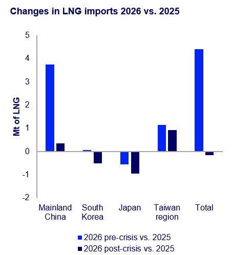 Wood Mackenzie previously projected 4.4 Mt (2.2%) growth in Northeast Asian LNG demand in 2026, but the Strait of Hormuz disruption is likely to halt that expansion.