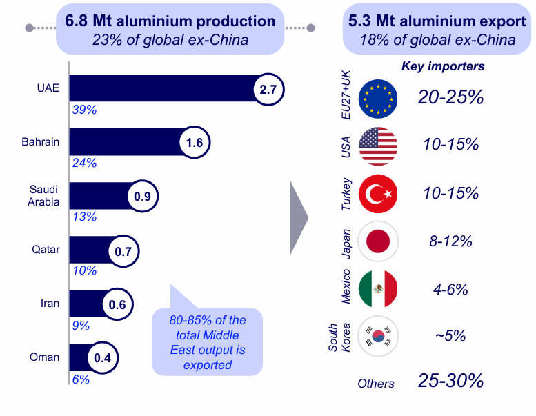 Middle East conflict puts up to 3.5 million tonnes of aluminium output at risk
