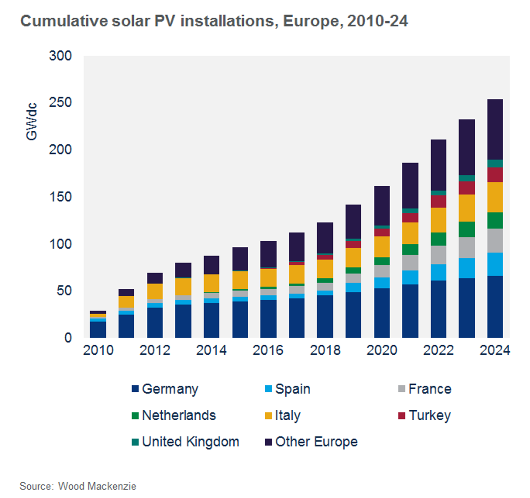 New solar installations within the European market will double in the next 3 years to reach a level of approximately 20GW/year. Total installed capacity in the region will surpass 250GW by 2024, according to new research from Wood Mackenzie Power & Renewables.