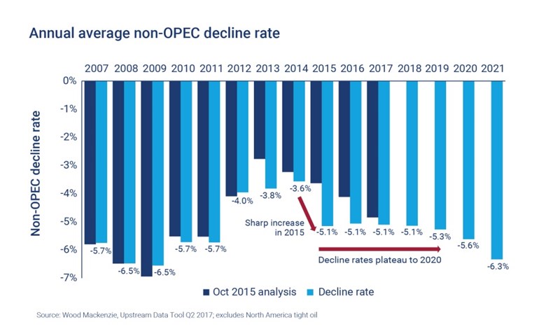"Our current modelling shows stable decline rates until 2020, then a widening to 6% in 2021. Although the present picture is one of resilience and smart spending, further gains remain unlikely. With investment so low, the industry is potentially storing up problems for supply that won't become apparent until after the end of the decade."