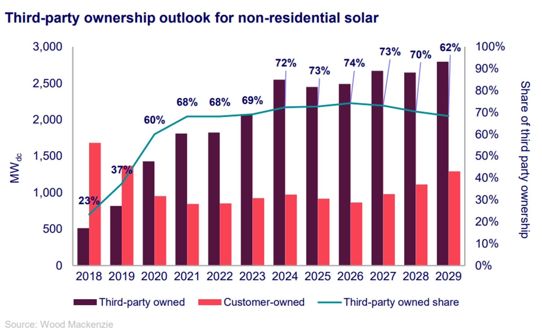 Third-party ownership dominates US non-residential solar market, reaching 72% share in 2024