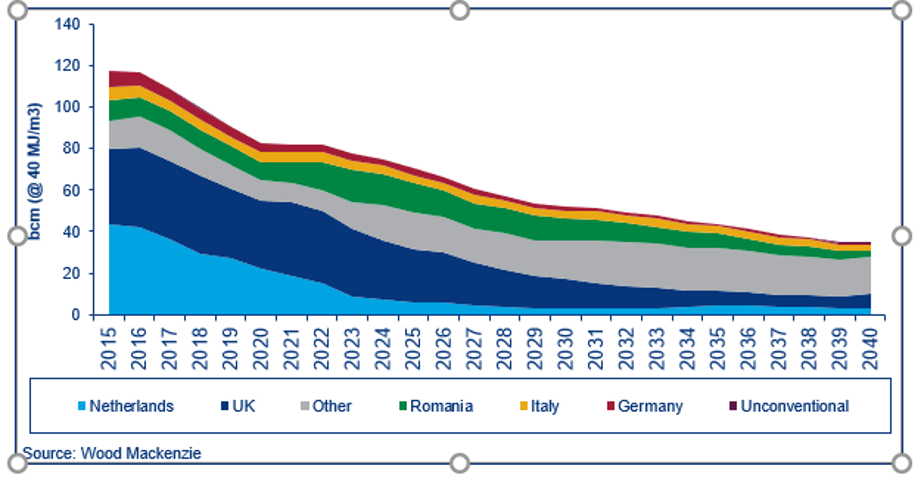 - Diminishing gas output exacerbates Europe's long-term import reliance, but mega finds in 2018 provide future hope