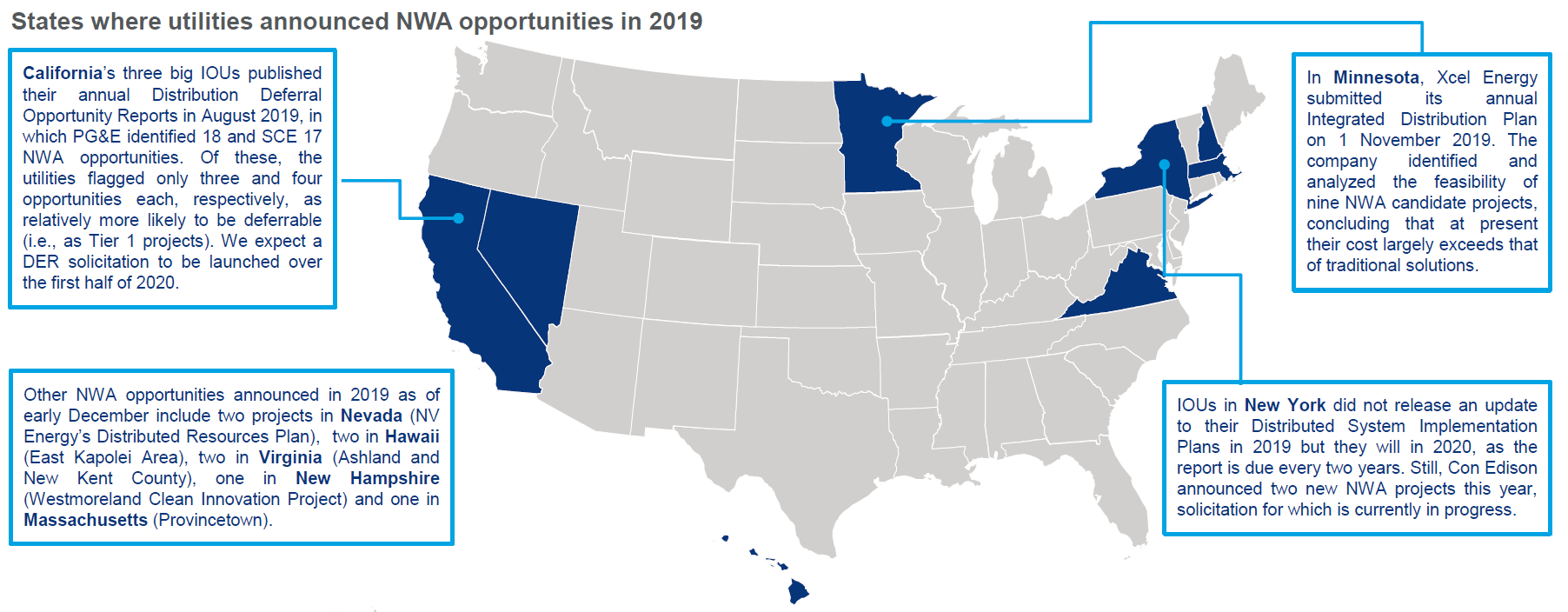 This insight provides an update on the pipeline for non-wires alternatives (NWA) in the United States. In the report, Wood Mackenzie analyzes NWA project data and market conditions announced through November 2019, including deeper looks into evolving resource mixes, project success rates and key regulatory proceedings. To further explore Wood Mackenzie's comprehensive NWA project data, see the NWA dashboard on the Grid Edge Data Hub.