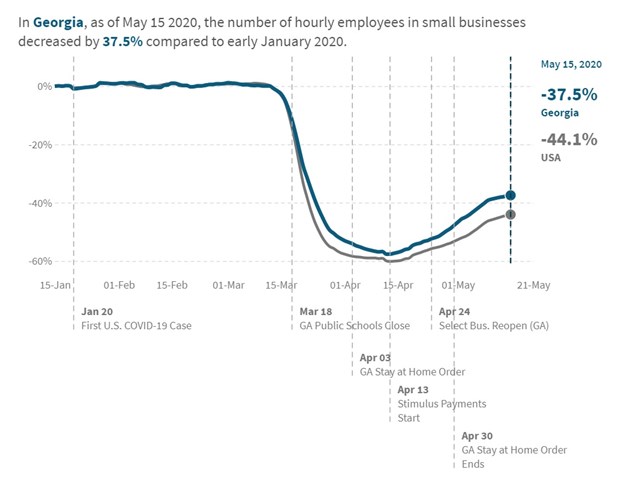 As a result, the economies of even the reopening states are still very weak. The Opportunity Insights Economic Tracker showed that the number of people employed by small businesses in Georgia last week was down 37.5% from its level in January. Spending has been going to online retail and large chains, while small businesses’ sales have slumped.