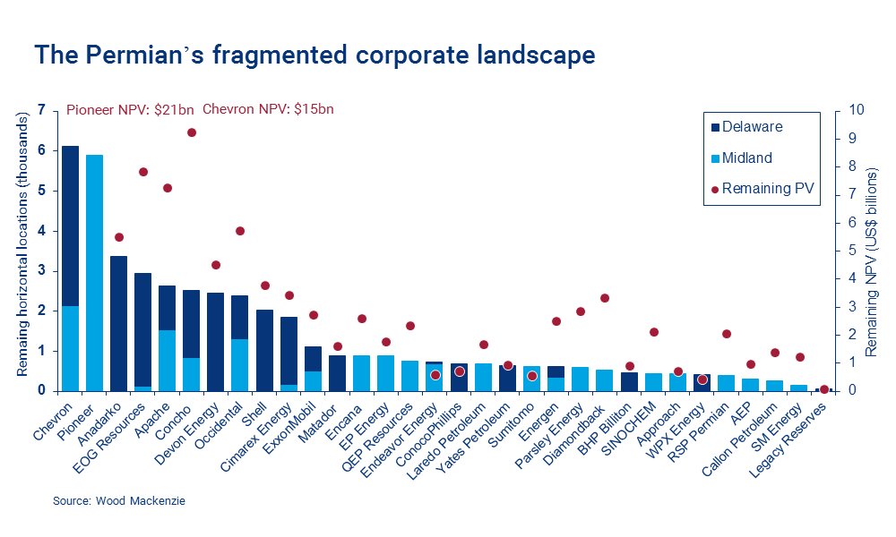 The Permian is still a fragmented market, with players large and small. We’re yet to see tight oil complete the transformation from its early days as a cottage industry to the full-scale industrialisation we ultimately expect.