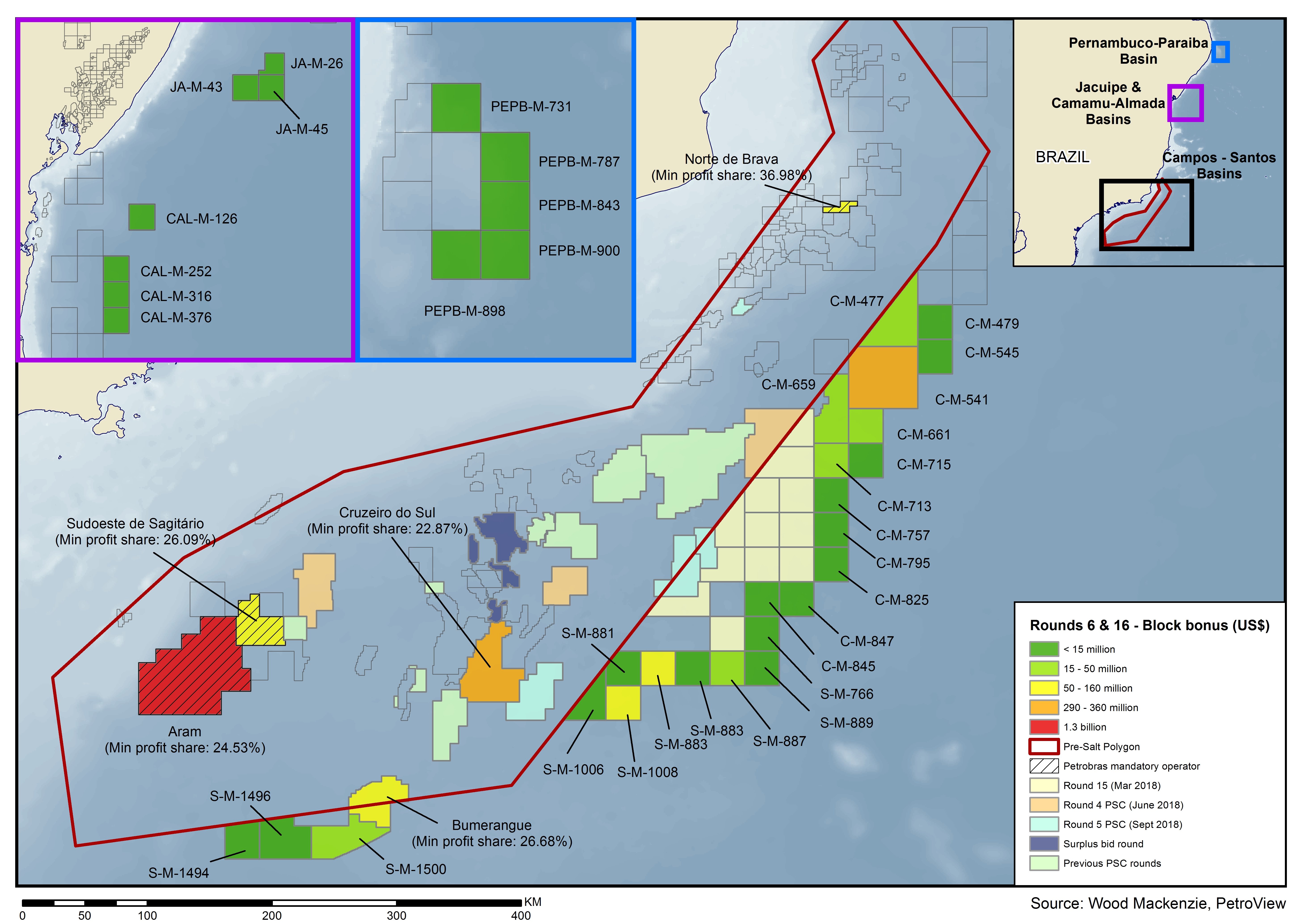Brazil bid rounds 6 and 16 illustrated by Wood Mackenzie's PetroView®