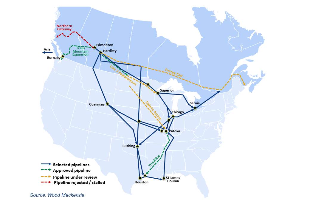 From an oil supply perspective, OPEC's discipline through this round of cuts has pushed the US supply response to the fore as prices are proving more supportive. These same prices and upcoming changes around pipeline infrastructure in North America has Canadian supply implications as well. North American refiners will see new barrels at the same time there are more international options for these barrels now that the export ban is lifted and new pipe looks destined to be commissioned.