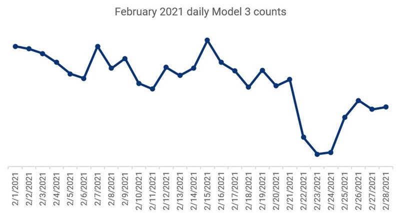 Daily Model 3 observations from Tesla’s Fremont Gigafactory during February 2020