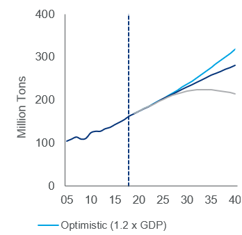 Massive investment is partly driven by the oil industry. Faced with the prospect of declining use of oil in transportation as electrification bites, the industry sees petrochemicals as a means to take advantage of the growing demand for plastics. This shift from crude to chemicals poses a risk to chemicals’ long-term margin viability. And if, as expected, the oil price remains high into the 2020s, this could also affect prices of petrochemical products and impact their competitiveness.